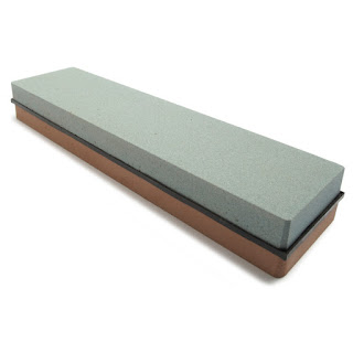 This is a knife care gift. Regardless of quality, knives work a whole lot better when they are sharp. Check yours, I bet they are not. Like any tool, blades need to be maintained. That plastic gizmo you run the knife through after you squash the tomato you tried to cut is not working. Knife care is a 'thing' that some get really into especially hunters. For the kitchen, I don't require a knife sharp enough to shave my arm, but they must be able to slice a ripe tomato with ease. There are countless sizes any types of water stones ranging from economical to very expensive, I am not an expert- Google will be your friend on this. A book or some other guide on knife care is a useful addition to this gift.